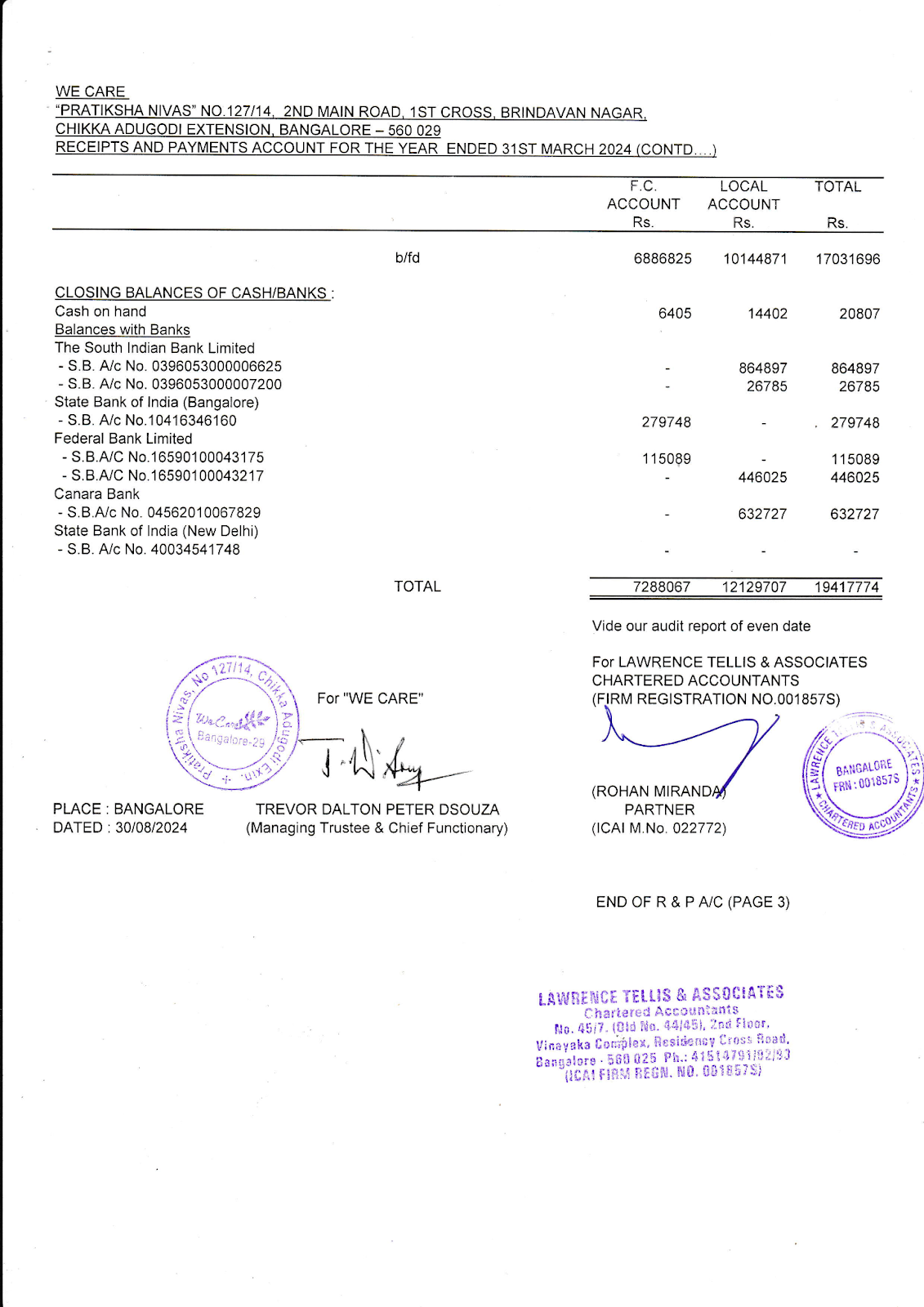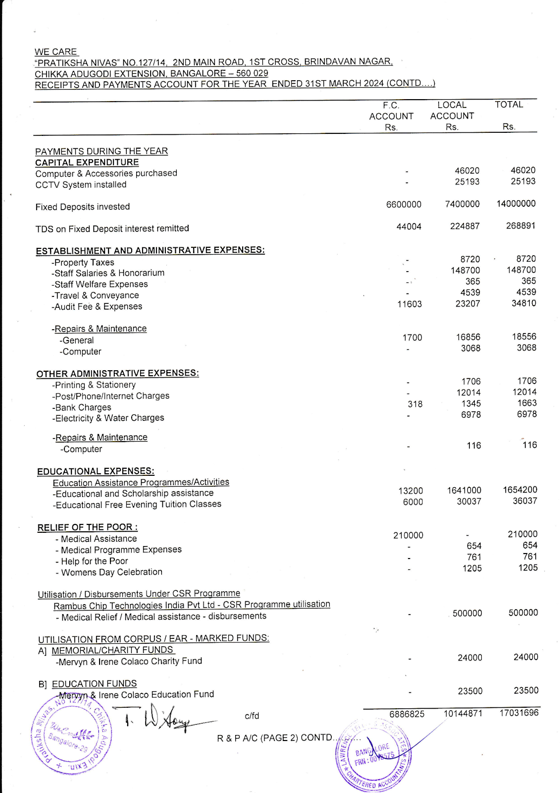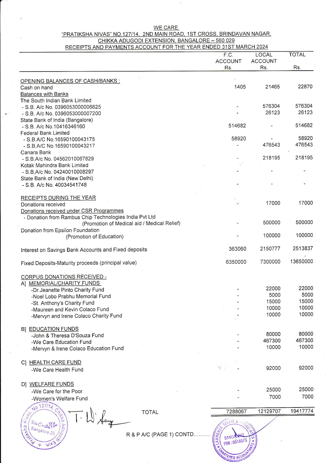 - The scanned copies of the audited statements (Receipts and Payments and Balance Sheet) for FY 2023-24 are also given below.