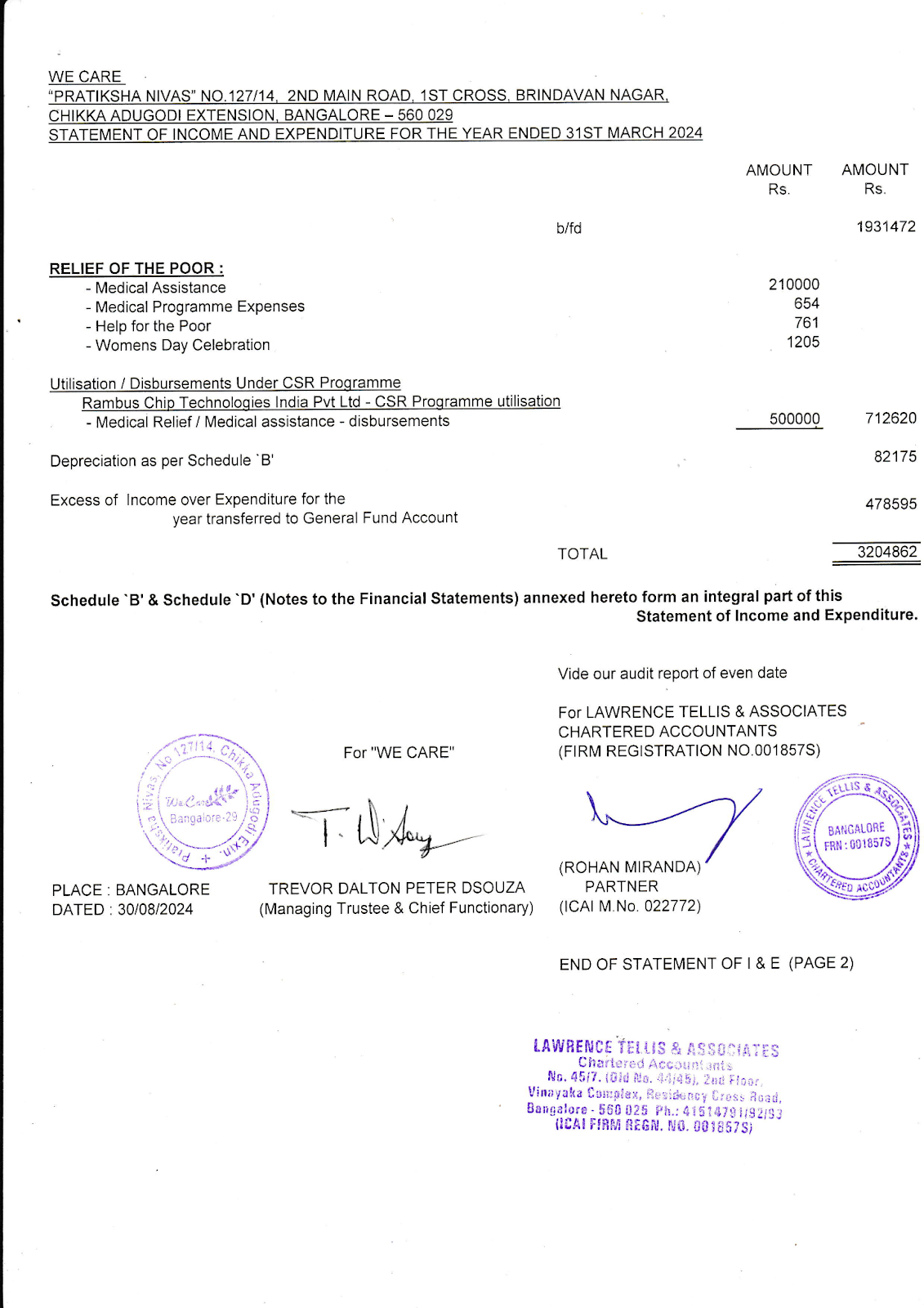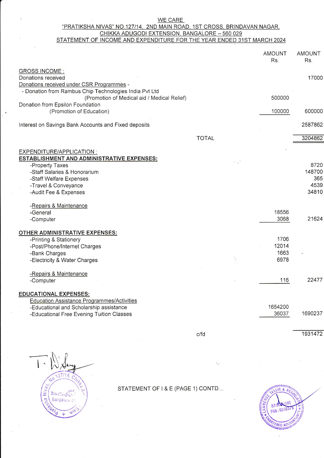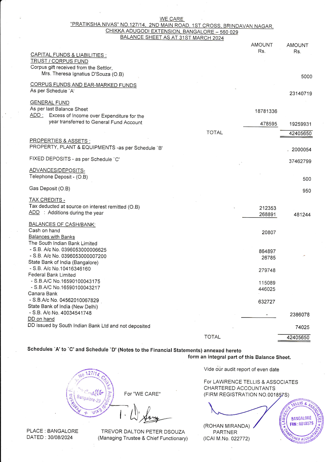 - The scanned copies of the audited statements (Receipts and Payments and Balance Sheet) for FY 2023-24 are also given below.